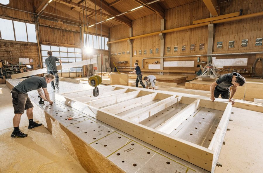 5. Produktion: Unsere Block - und Riegelhäuser entstehen in unserer Produktionshalle, hier werden die einzelnen Holzelemente angefertigt und auf der Baustelle montiert.