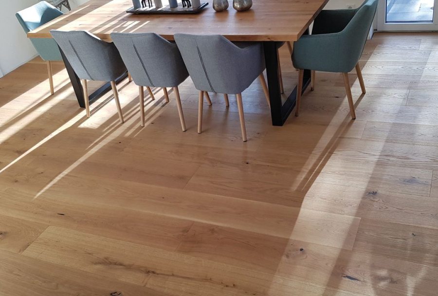Ein natürlicher Boden trägt zum allgemeinen Wohlbefinden bei. Daher setzen wir auf hochwertiges Massivholzparkett aus Eiche, speziell für Ihre Bedürfnisse und Vorstellungen angefertigt. In unserer hauseigenen Manufaktur veredeln wir Massivholzparkett exakt nach Ihren Wünschen. Alternativ bieten wir auch kostengünstigeres Mehrschichtparkett an. Gerne beraten wir Sie umfangreich.