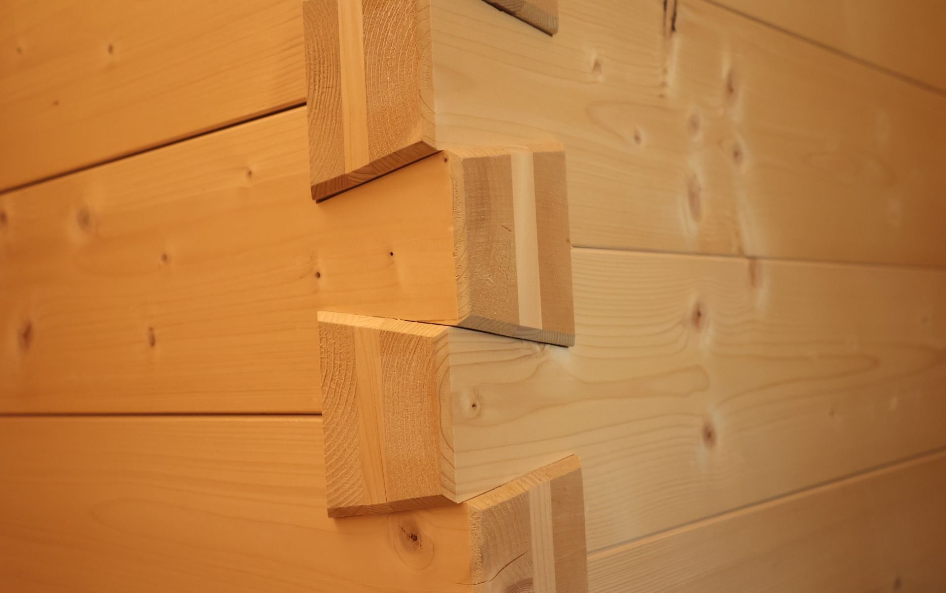 Erdgeschoss Riegelhaus und Obergeschoss Blockhaus - Wandverbindung Tiroler Schloss