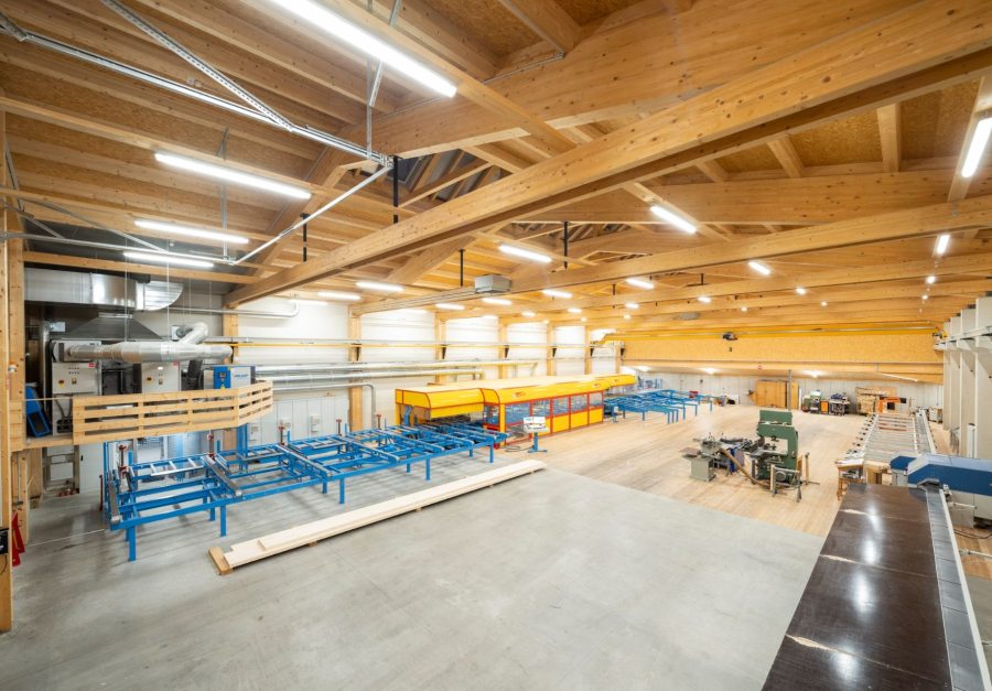 5. Produktion: Unsere Block - und Riegelhäuser entstehen in unserer Produktionshalle, hier werden die einzelnen Holzelemente angefertigt und auf der Baustelle montiert.