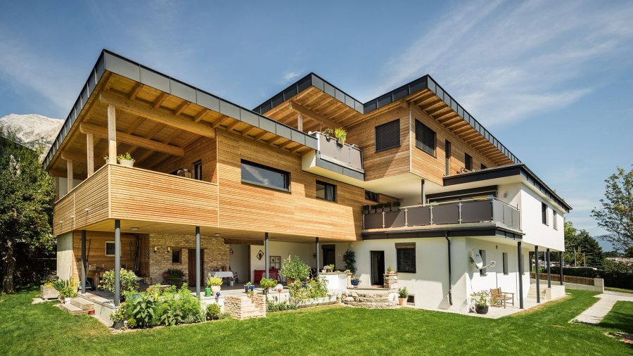 Oberfläche: Erdgeschoss Putzfassade, Dachgeschoss Holzfassade Lärche u…