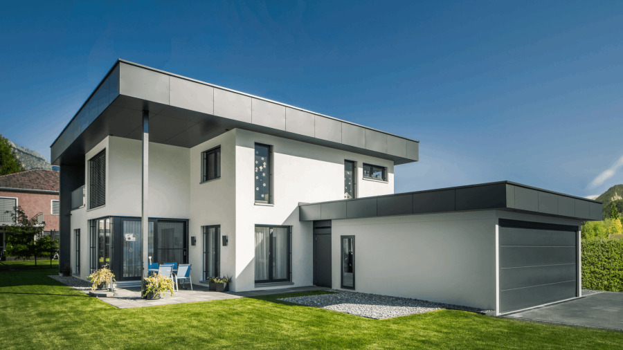 Projekttyp: Einfamilienhaus Oberfläche: Erdgeschoss Putzfassade und Da…